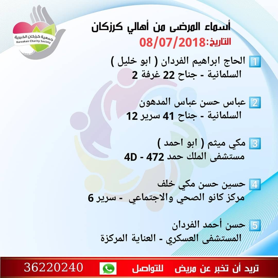 أسماء مرضى كرزكان 8-7-2018 #مرضى_كرزكان #مرضى المصدر