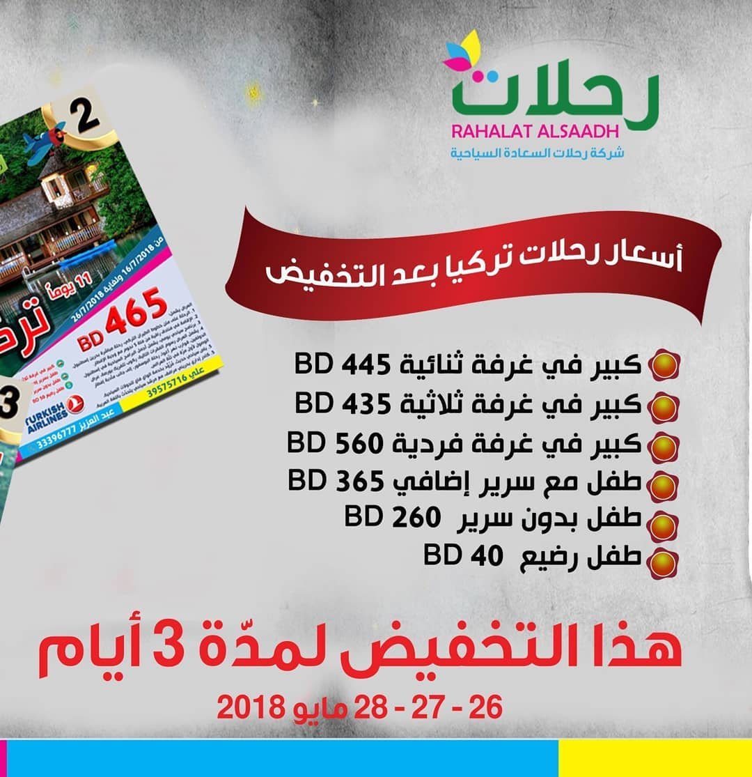 أكيد نعجبكم، وكل مرّّة نفاجئكم.. إذا إنتَ تفكّر تسافر تركيا في الصيف، خذ هذا العرض وإنت مغمّض.. تذاكر سفر على الطيران التركي وطيران الخليج، فنادق فاخرة من فئة 5 نجوم، رسوم دخول الأماكن السياحية، برنامج سياحي يومي، باص سياحي مزوّد بخدمة الواي فاي.. يعني سافر وإنت مدلّل!! عندنا عرض مدة 3 أيام نقدّم فيه أسعار مو حلوووه بس إلا تجنّن.. حرّك البوست إلى اليسار وشوف أسعارنا.. وإذا تبي تكلّمني مباشر أو على الواتس آب أنا علي مرهون لا تتردد وهذا رقمي 39575716 وفالكم طيّب!! @rahalat