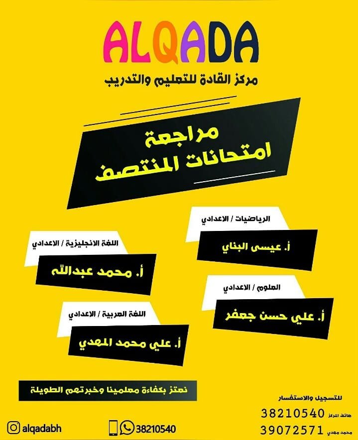 👨🏫 يعلن عن بدء التسجيل لمراجعة *امتحانات المنتصف* 👨🏫 *مع ابرز معلمي المواد نفسها في المدارس الحكومية* 📍خبرة في المراجعة