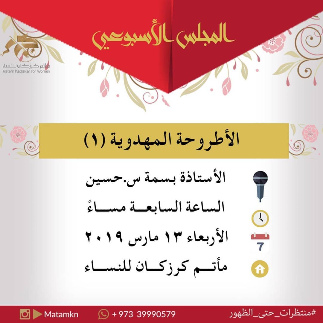 الاطروحة المهدوية… محاضرة ضمن برنامج المجلس الأسبوعي لمأتم كرزكان للنساء.