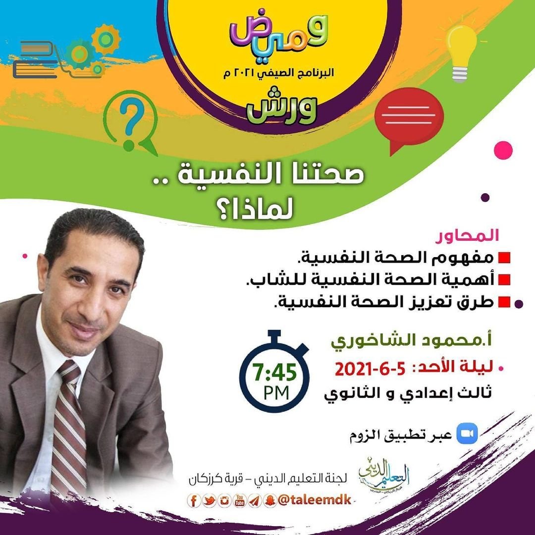 الفصـ(3)ـل البرنامج الصيفي “وميض” *° -ورش- °* *ليلة الأحد* لطلبة الثالث الإعد…