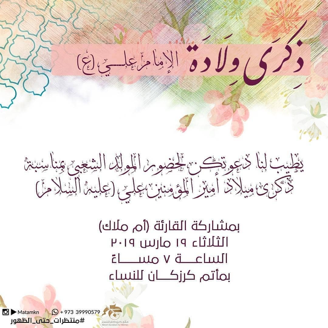 الليلة: المولد الشعبي بمناسبة ذكرى ميلاد الإمام علي (ع) بمأتم كرزكان للنساء