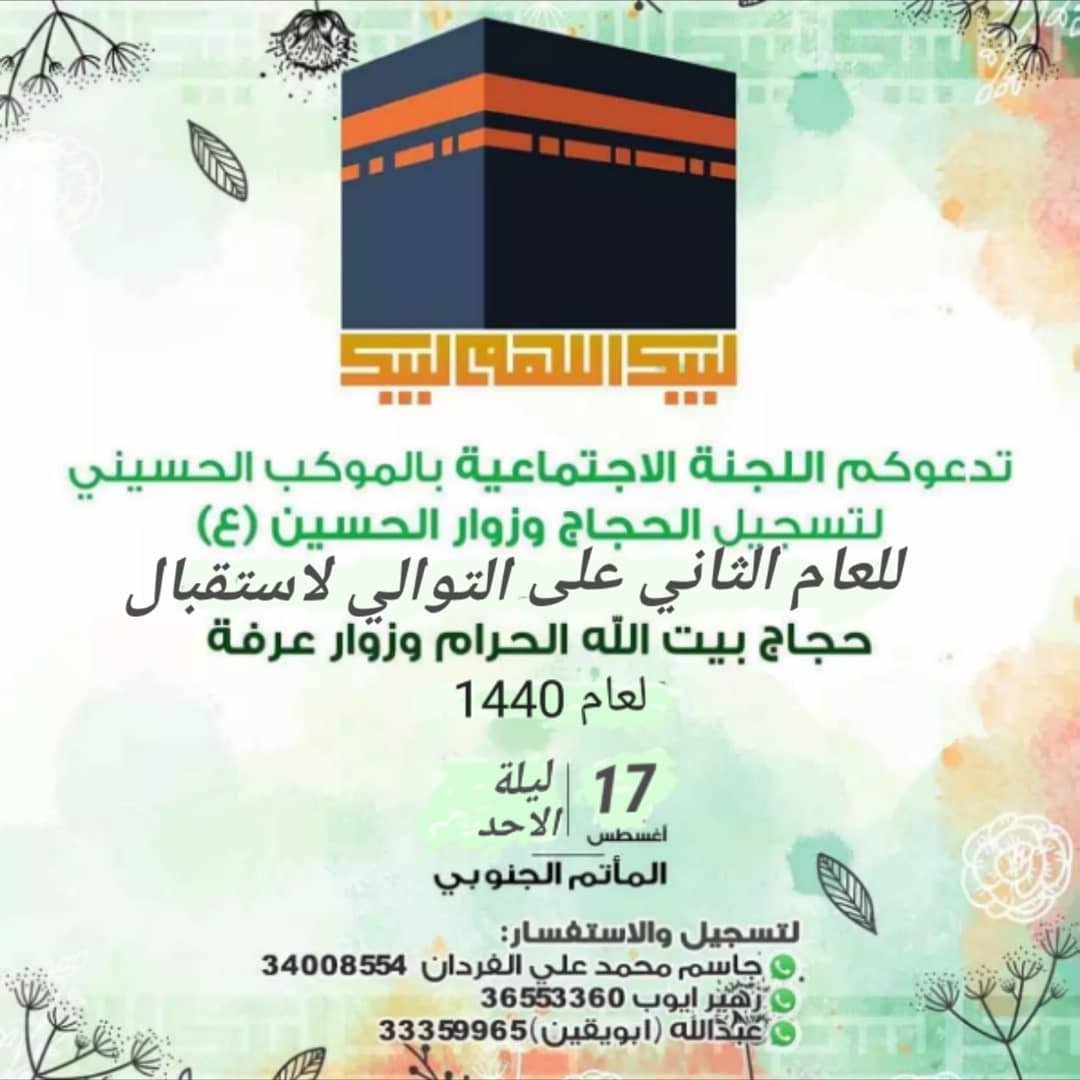 اليوم الاحد… اللجنة الاجتماعية بالموكب الحسيني تنظم فعالية استقبال حجاج بيت الله الحرام وزوار عرفة