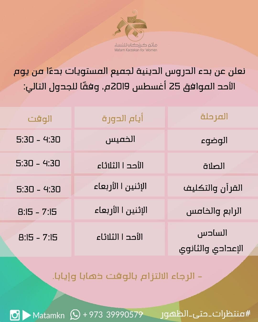 اليوم بدء الدروس الدينية بمأتم كرزكان للنساء