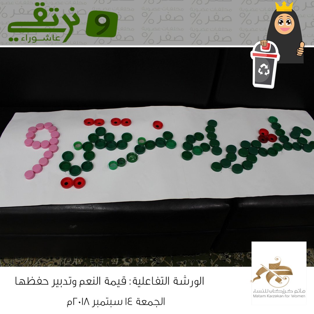 بالتعاون مع فريق (عاشوراء نرتقي ٩)؛ أقام مأتم كرزكان للنساء يوم الجمعة الموافق ٤ محرم ١٤٤٠هـ ورشة تفاعلية توعوية بعنوان: قيمة النعم وتدبير حفظها وذلك بإشراف الأستاذة ابتسام عباس.