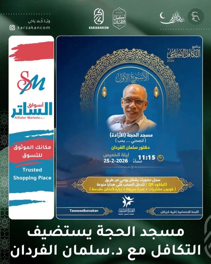 ( ليلة الخميس ) 📍 الساعة 11:15 ليلًا 🔹( انصحني ... بحب ) 📌 مسجد الحجة ( الأزادة ) 🔸ملاحظة : × كن من الحضور و سجل لتدخل السحب على ( عمرة سريعة .. زيارة للأماكن المقدسة.. كوبونات شراء) -——————— المصدر: إنستغرام