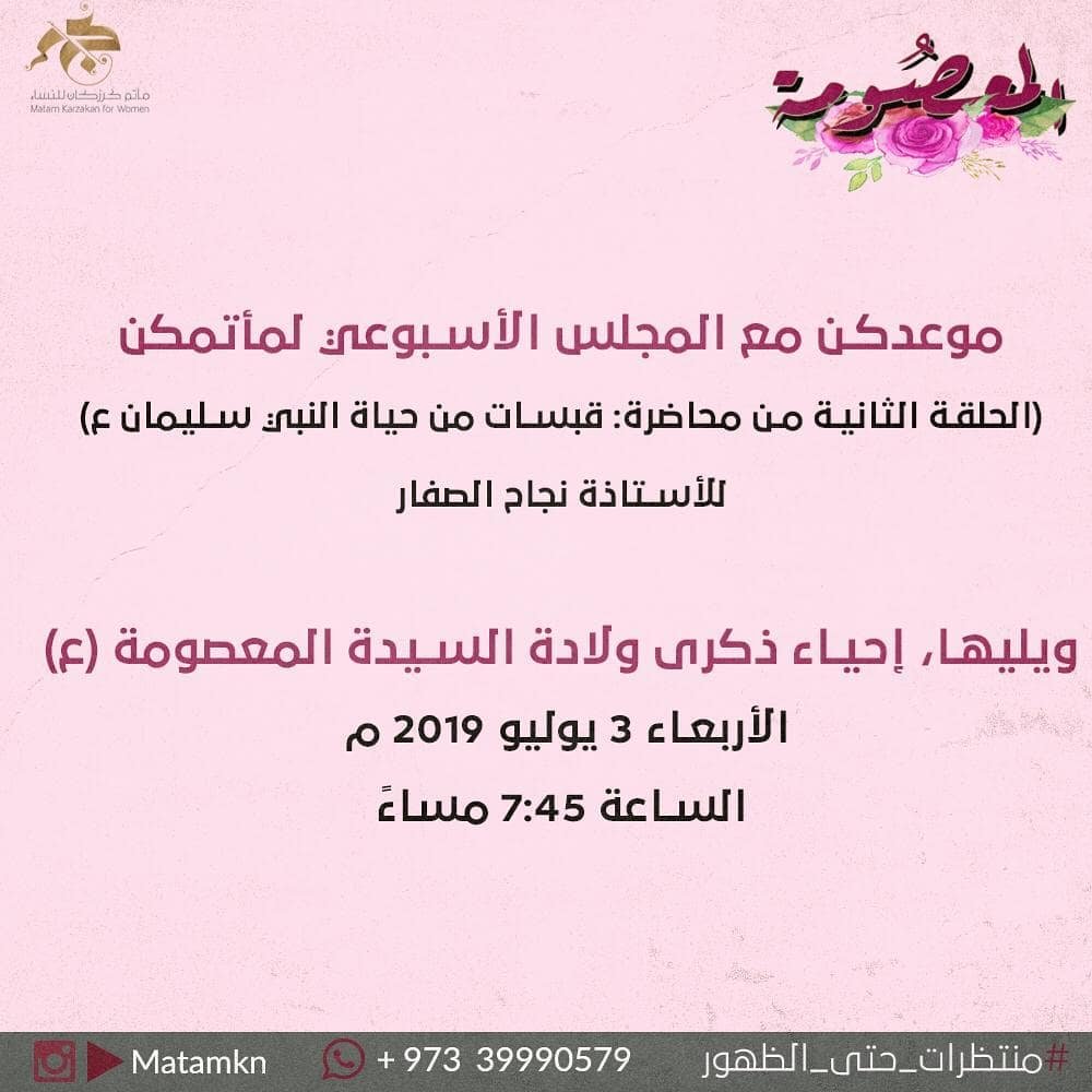 برنامج المجلس الأسبوعي لمأتم كرزكان للنساء