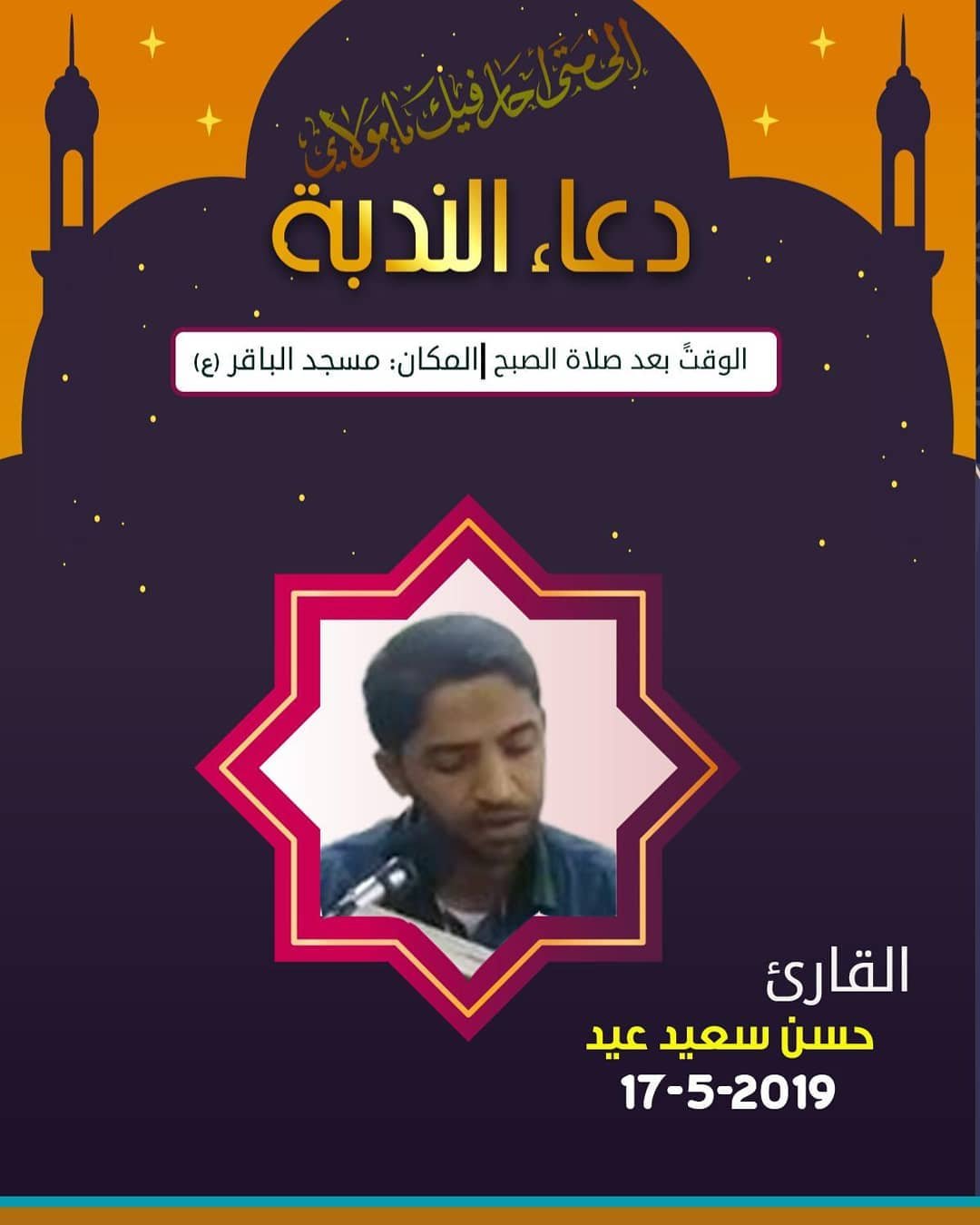برنامج قراءة دعاء الندبة غدا الجمعث بمسجد الإمام الباقر ع بعد صلاة الصبح مباشرة