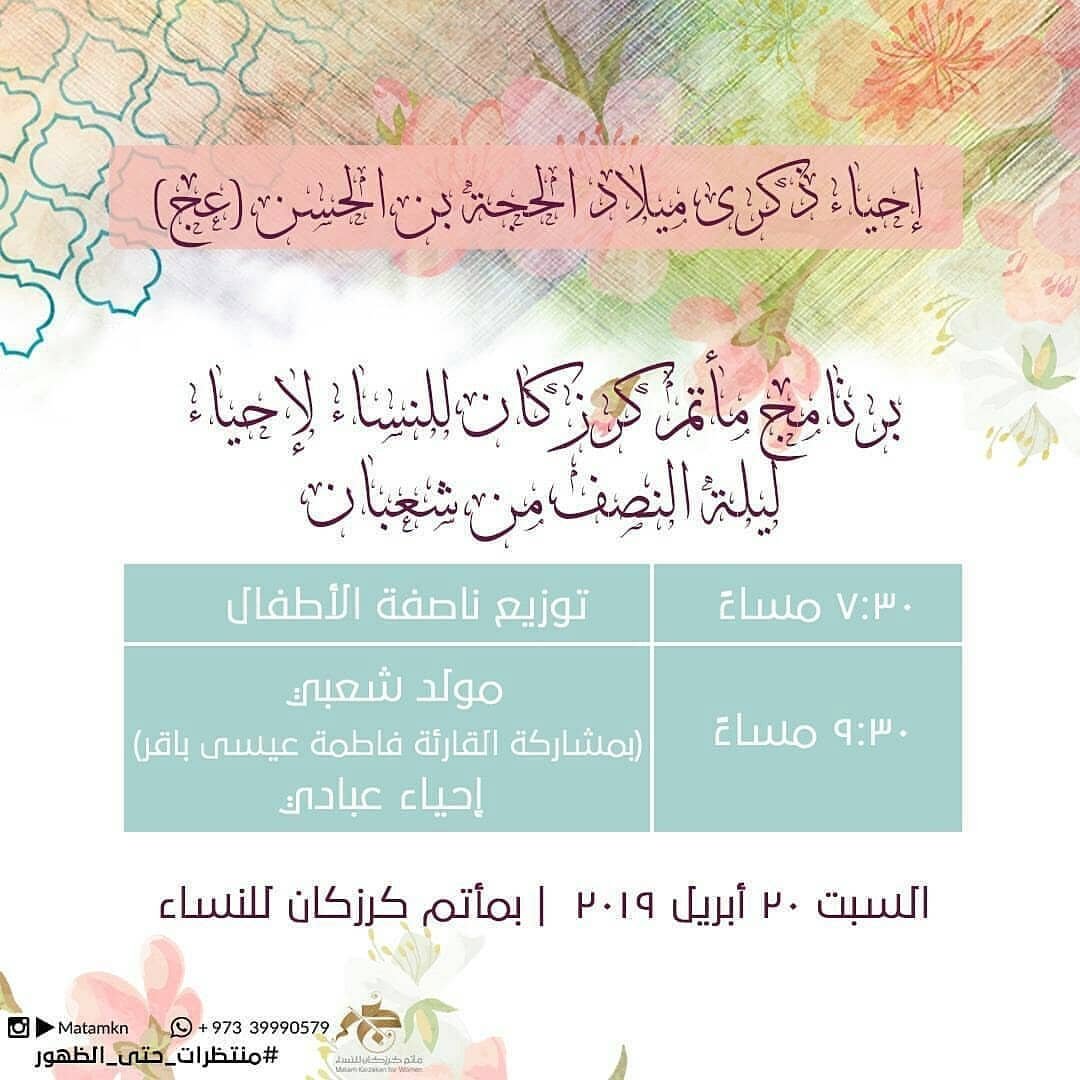 برنامج مأتم كرزكان للنساء لإحياء ذكرى ميلاد المهدي المنتظر (عج) …