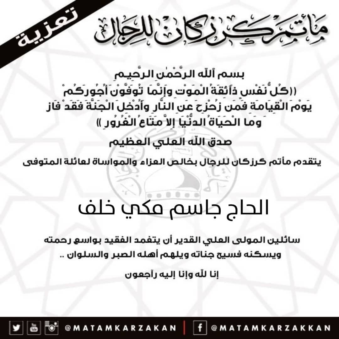 يتقدم مأتم كرزكان للرجال بخالص العزاء والمواساة لعائلة المتوفى