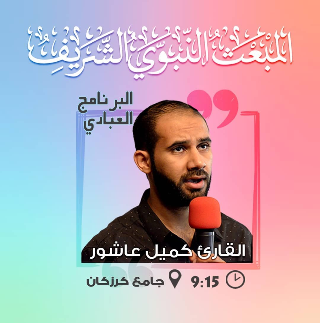 بمناسبة المبعث النبوي الشريف سيقام هذه الليلة إحياء عبادي في جامع كرزكان بمشاركة القارئ كميل عاشور الساعة 9:15 بعد الاحتفال