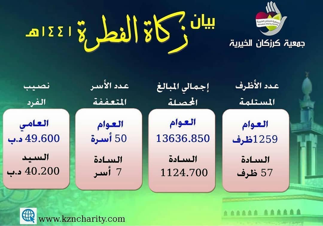 بيان زكاة الفطرة 1441 هجرية لجمعية كرزكان الخيرية