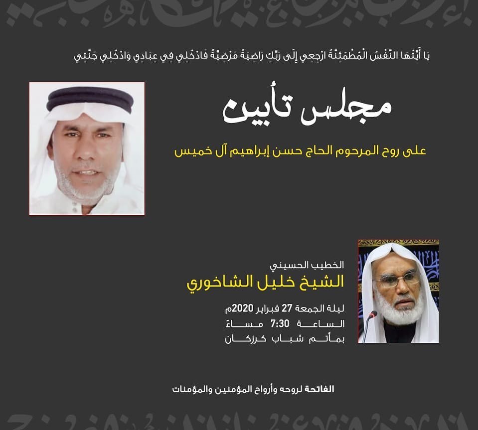 تأبين المرحوم الحاج حسن علي إبراهيم ليلة الجمعة القادمة