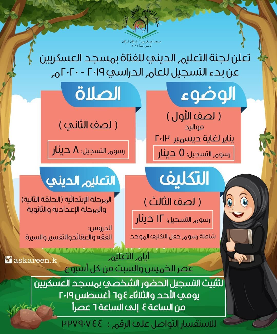 تعليم الفتاة بمسجد العسكريين ع تعلن عن بدء التسجيل