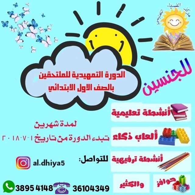 🔆🔆🔆تمهيد للملتحقين بالصف الاول الابتدائي يهدف لتزويدهم بالأساسيات اللازمة للمرحلة الجديدة..🚻 للجنسين.. مدة الدورة شهرين موزعة على ثلاثة ايام 🕒بالأسبوع لمدة ساعتين باليوم.. 💵35 دينار للشهر..