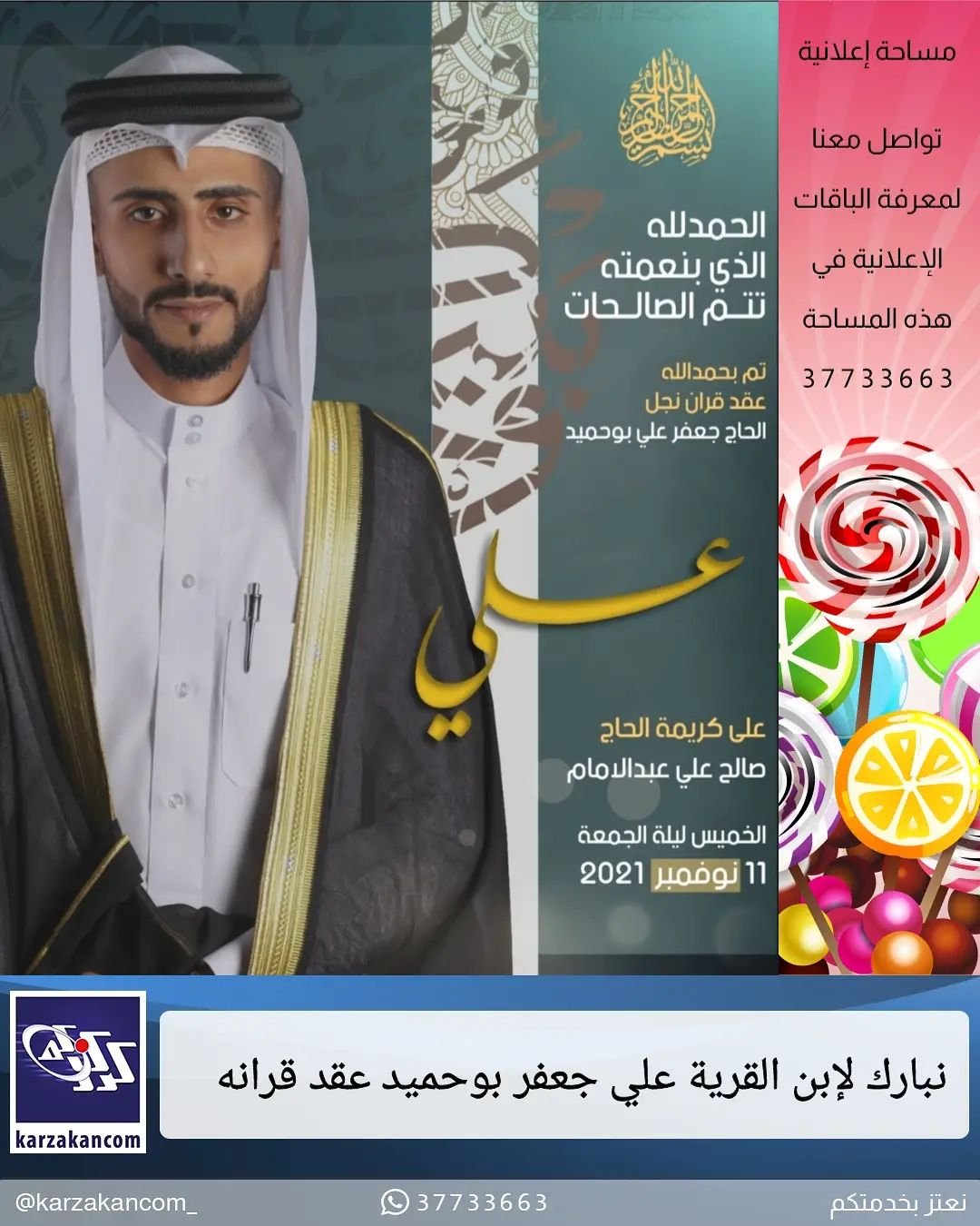 تم عقد قران ابن القرية علي جعفر علي بوحميد على كريمة الحاج صالح علي عبدالإمام.