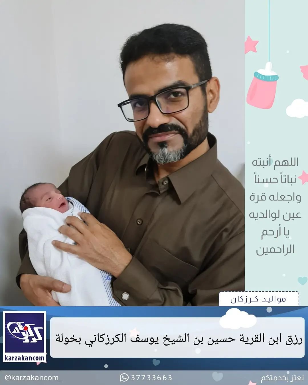 👶رزق إبن القرية ” حسين بن الشيخ يوسف الكرزكاني ” وحرمه المصون بمولودتهما “خولة”.. جعلها الله من مواليد الخير والسعادة وتتربى في عز والديها..