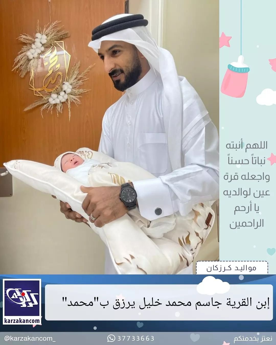 👶 رزق ابن القرية ” جاسم محمد خليل ” وحرمه المصون بمولود وأسمياه ” محمد “.. جعله الله من مواليد الخير والسعادة ويتربى في عز والديه