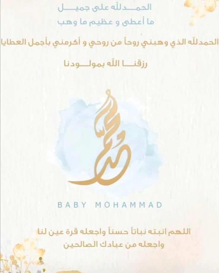👶 رزق ابن القرية ” جاسم محمد خليل ” وحرمه المصون بمولود وأسمياه ” محمد “.. جعله الله من مواليد الخير والسعادة ويتربى في عز والديه