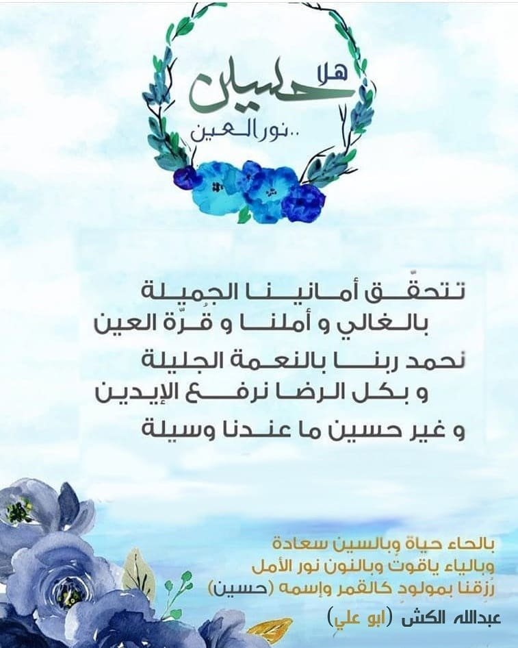 رزق ابن القرية “عبدالله علي الكش” وحرمه المصون بمولود وأسمياه “حسين” جعله الله م…