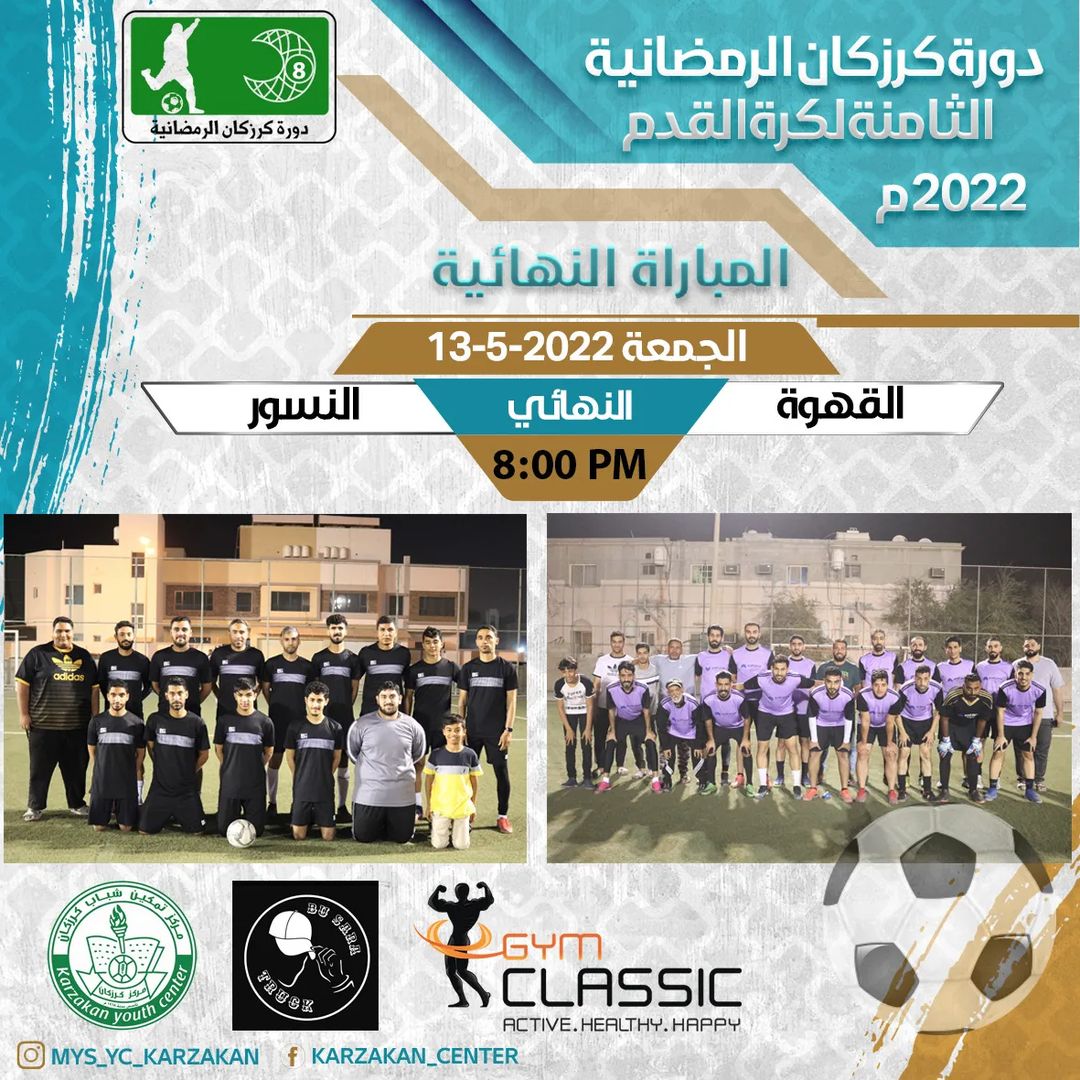 فريق القهوة يواجه فريق النسور مساء الجمعة القادم في نهائي دورة كرزكان الرمضانية الثامنة لكرة القدم ٢٠٢٢م، فمن سيحقق اللقب. #مركز_كرزكان #مركز_تمكين_شباب_كرزكان #مركز_كرزكان_الثقافي_والرياضي #كرزكان #البحرين المصدر