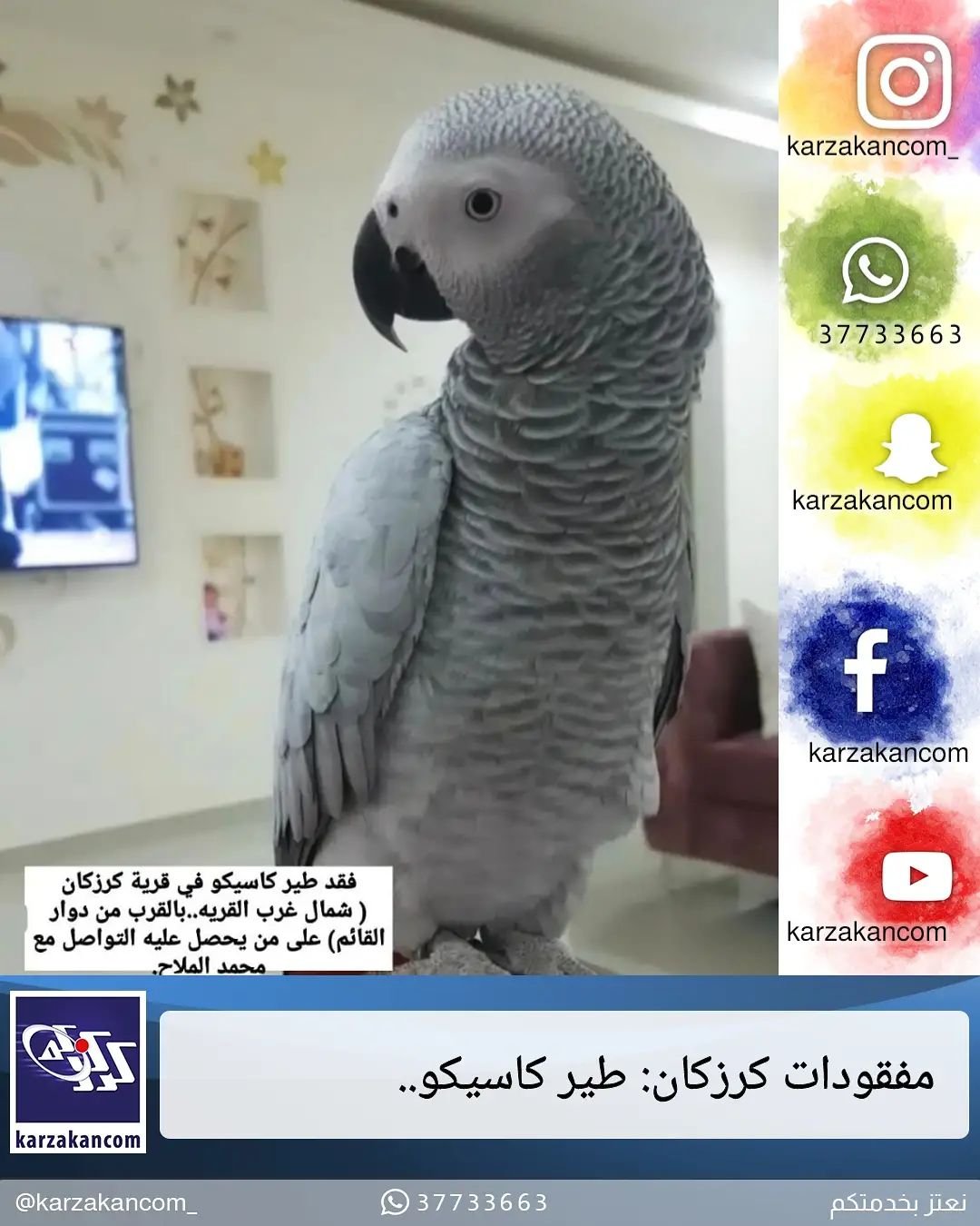 فقد طير كاسيكو في قرية كرزكان ( شمال غرب القريه..بالقرب من دوار القائم) على من يحصل عليه التواصل مع محمد الملاح.