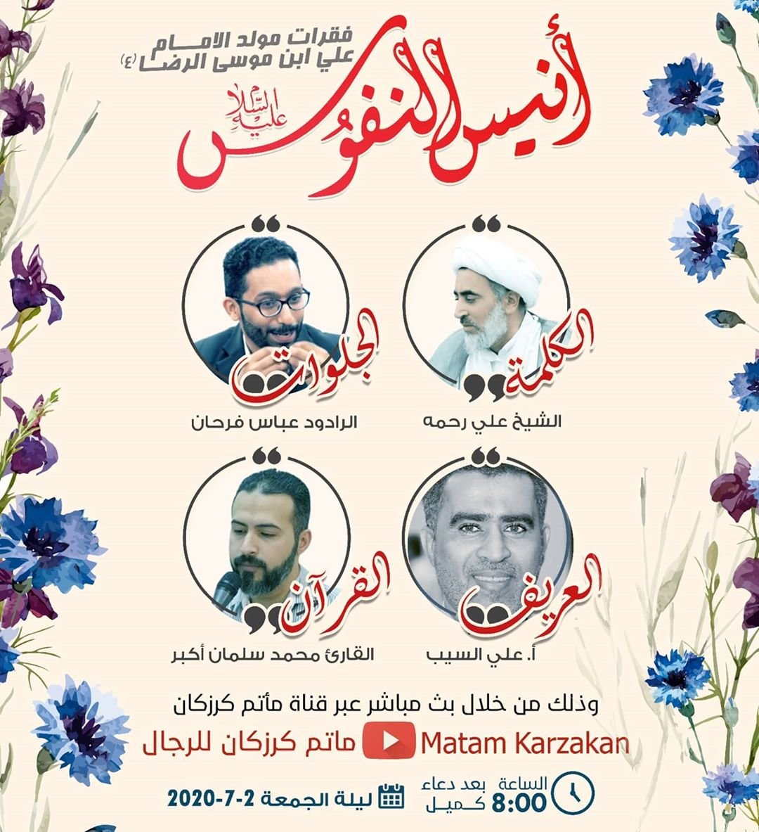 فقرات حفل ذكرى ولادة أنيس النفوس الإمام الرضا عليه السلام