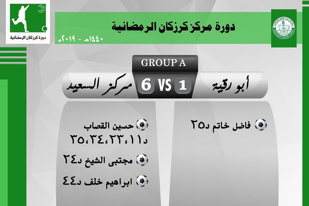 فوز مركز السعيد على أبو رقية بستة أهداف لهدف ضمن دورة مركز كرزكان الرمضانية السابعة ..