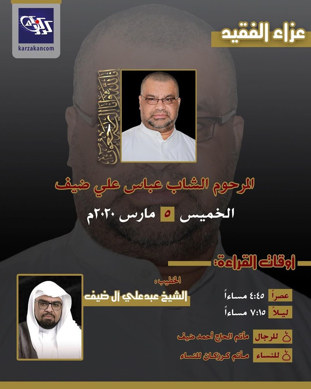 . مجالس التعزية للمرحوم الشاب عباس علي محمد ضيف من عصر اليوم الجمعة 06-03-2020 ….