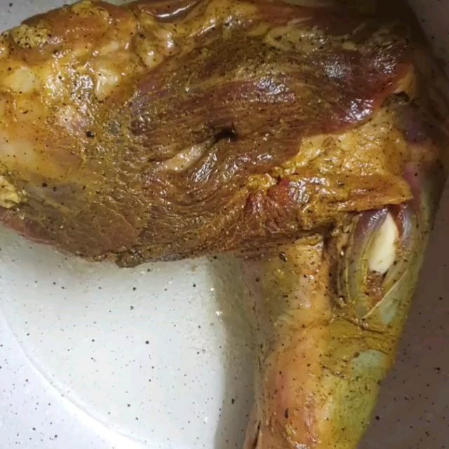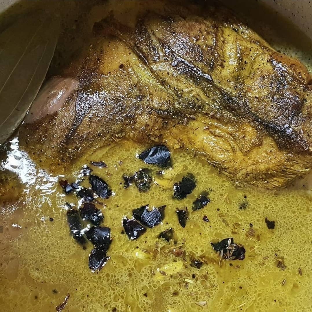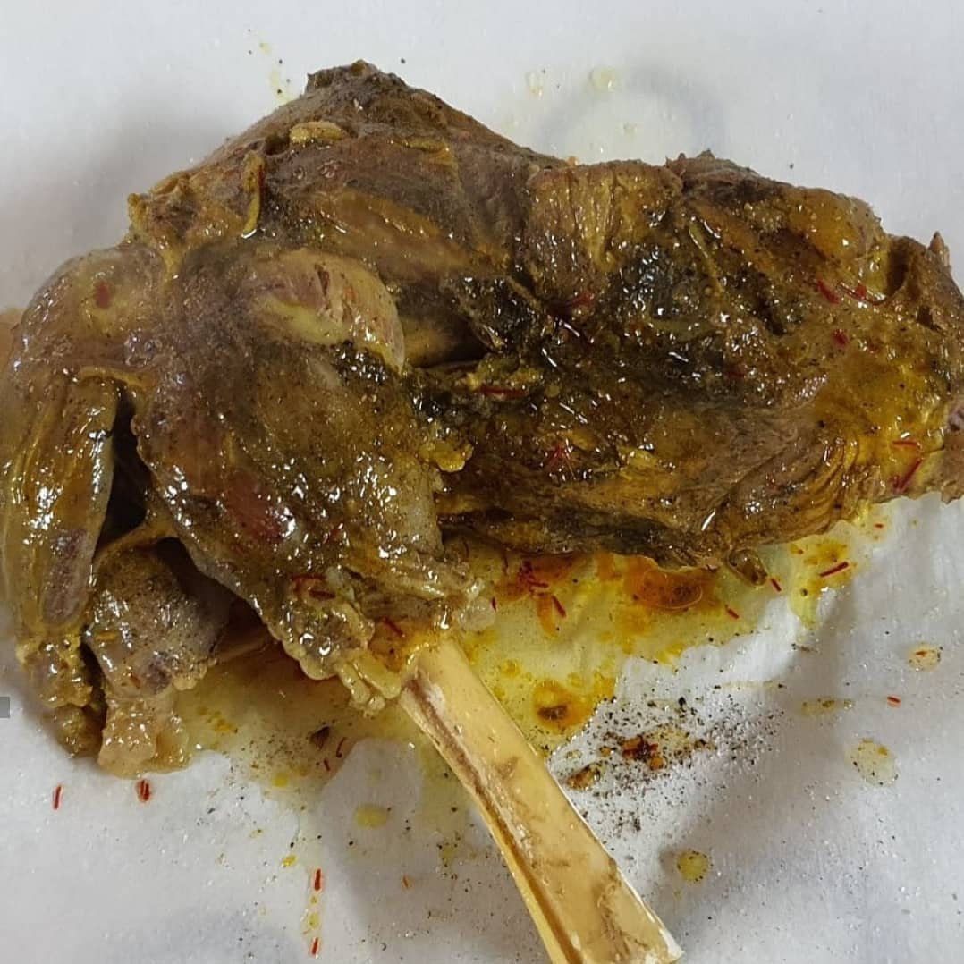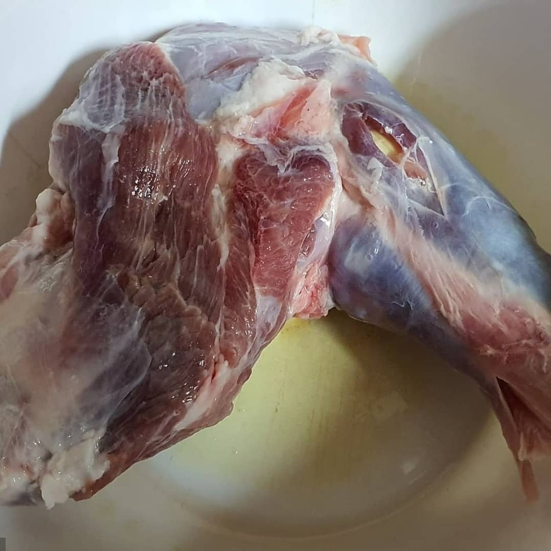 اي قطعة لحم تحبونها( استخدمت الكتف) – ٤ فصوص ثوم- بهارات( نصف ملعقة كركم- نصف ملعقة فلفل اسود- بابريكا – نصف ملعقة ليمون اسود – ملعقة ملح- قليل من بهار مخلوط) – بهارات صحيحة للفوحان( حبتين مسمار- حبوب فلفل اسود- هيل – ورق غار- كمون)