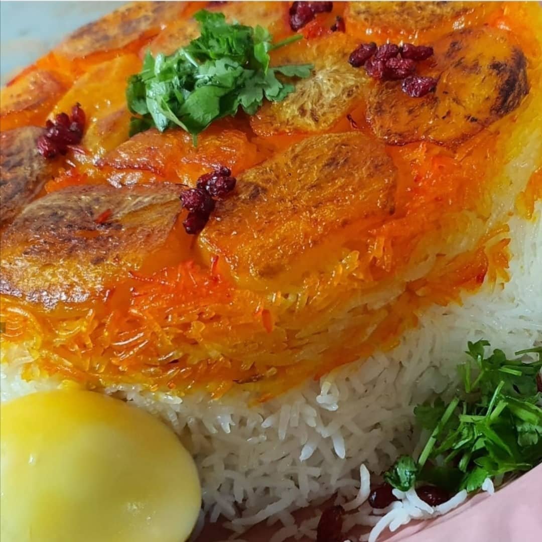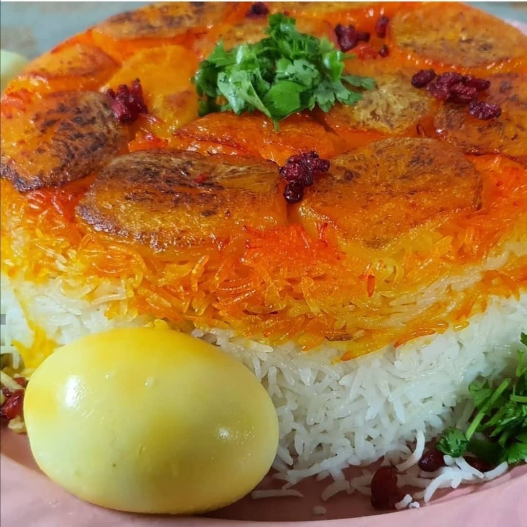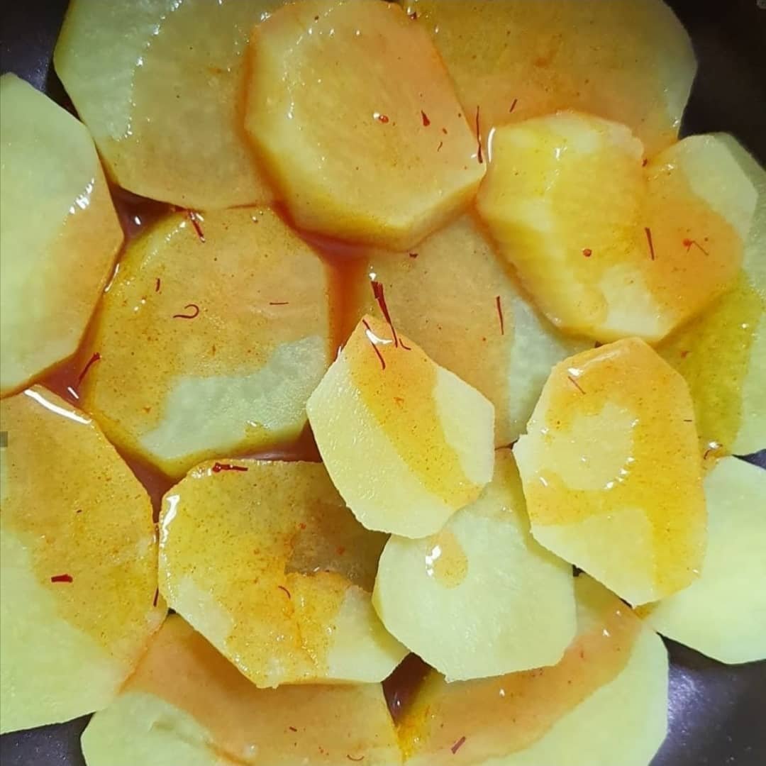 المقادير: بطاط مقطع – عيش منقوع ومغسول – لسوي منقوع الزعفران مع زيت ولون الزعفران وشوي ماء ورد أو عادي