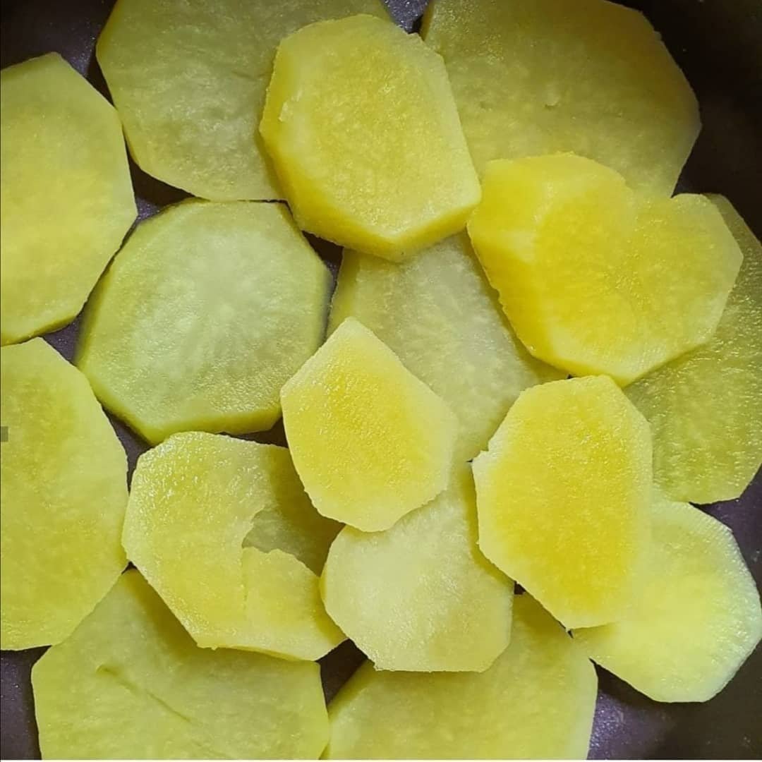 اسلق البطاط شوي عشان يطلع لين مو خشن لانه ماراح يأخذ وقت واجد