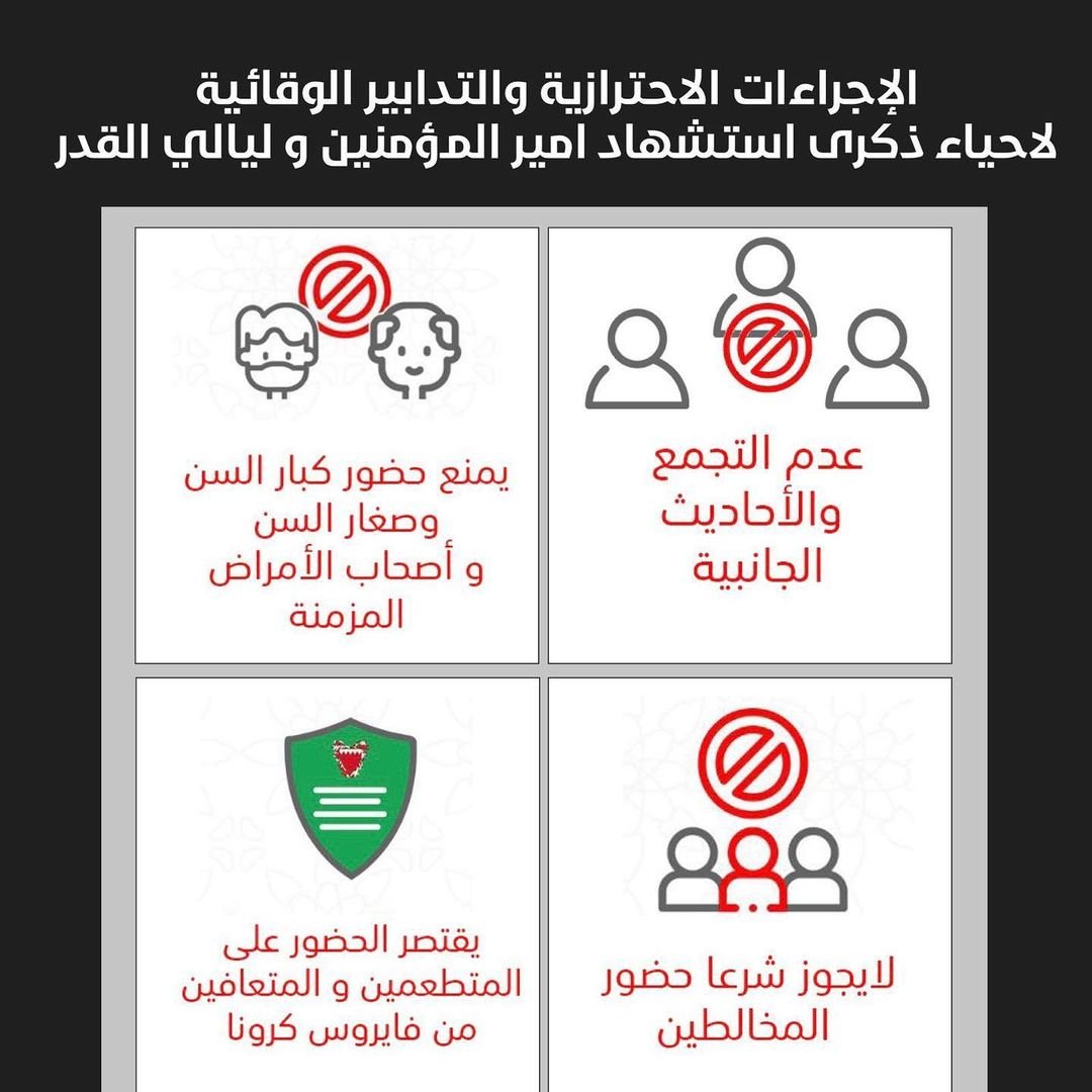 ✨ ارتداء الكمام والألتزام بالإجراءات الصحية اثناء تواجدك بالمأتم او المسجد