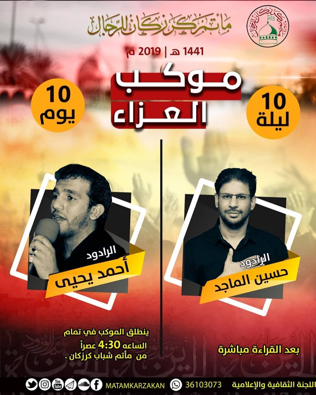 - . . ۩ ﻣأﭠم ﻛرزﻛٱن .. . . ♦ مأتم كرزكان للرجال ١٤٤١ هـ | 2019 م . .برنامج عزاء كرزكان ليوم التاسع والعاشر من محرم الحرام . . . #Bahrain #Matam #Karzakan #البحرين #مأتم_كرزكان #مأتم_السنابس #مأتم_بن_سلوم #مأتم_البحرين المصدر