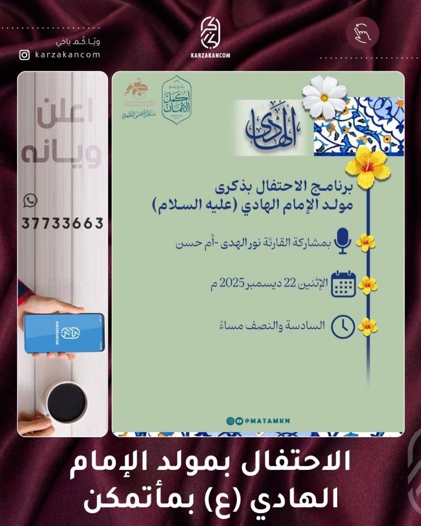 الاحتفال بمولد الإمام الهادي (ع) بمأتم كرزكان للنساء @matamkn كرزكانـ.ـكم 22 ديسمبر، 2025 بدون تصنيف اترك تعليقا 1 المشاهدات المصدر: إنستغرام مرتبط شارك tweet