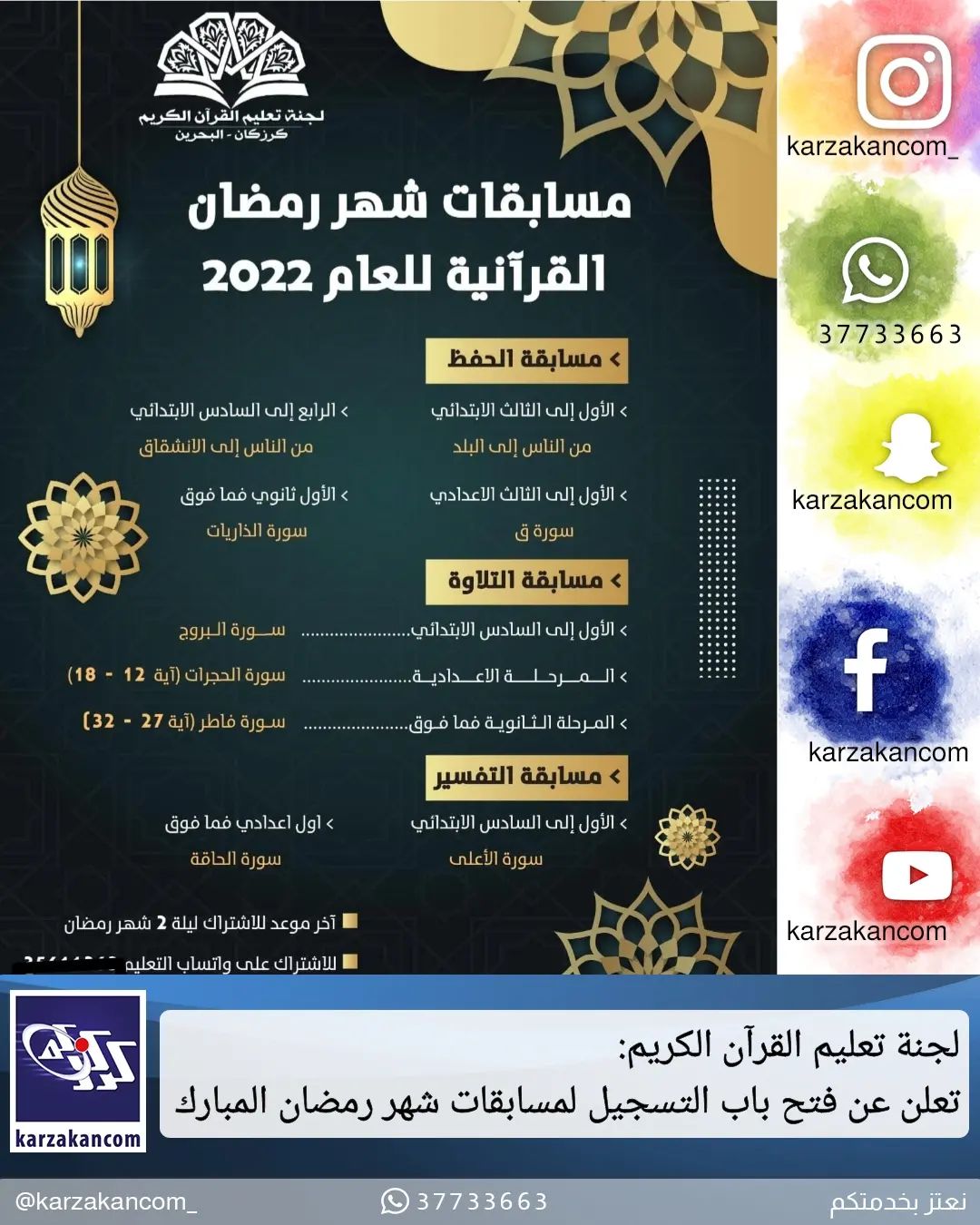 ⭕ *تعلن عن انطلاق التسجيل في مسابقات شهر رمضان القرآنية*
