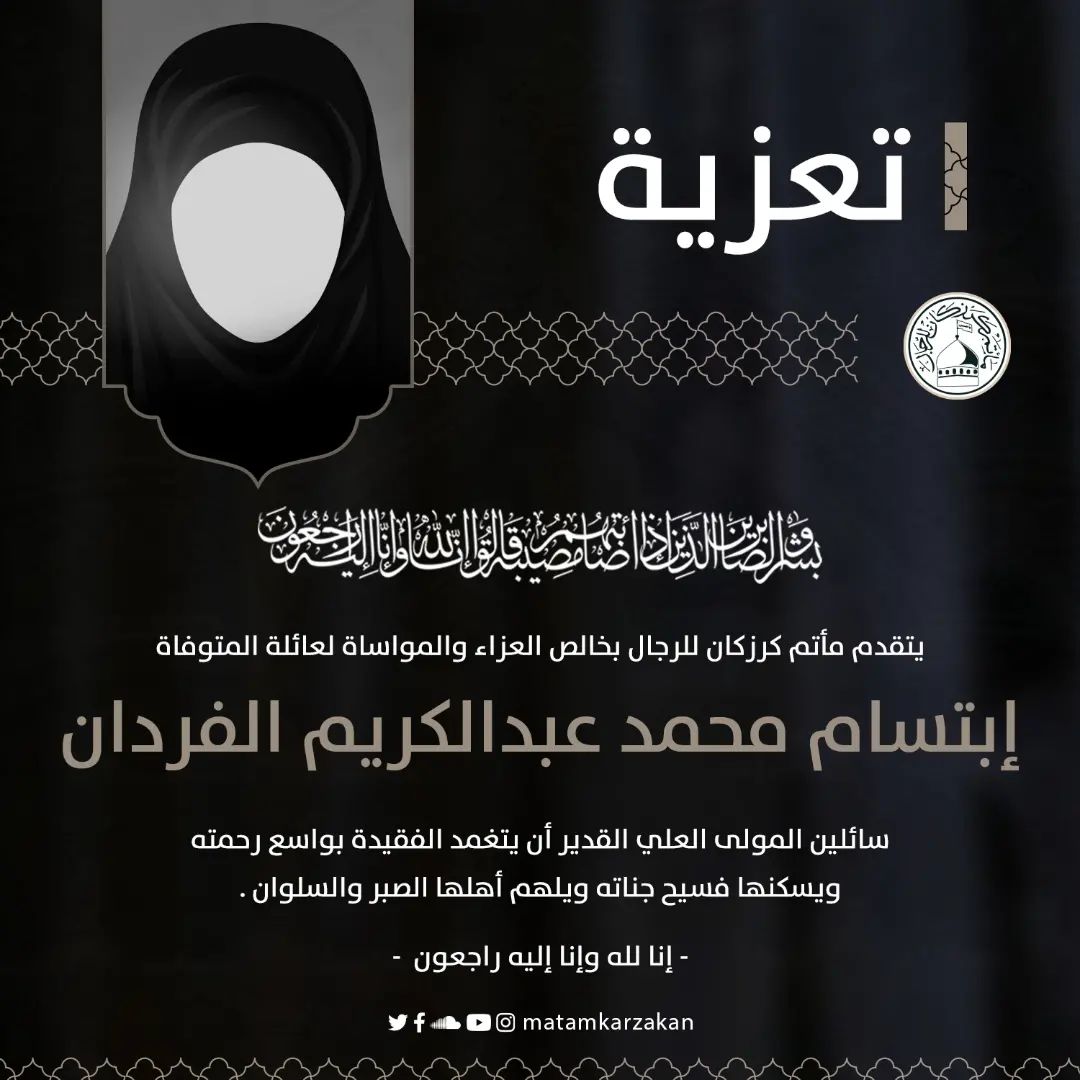يتقدم مأتم كرزكان للرجال بخالص العزاء والمواساة لعائلة