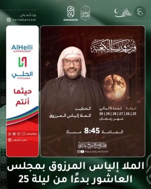 أكمل القراءة »الملا إلياس المرزوق بمجلس الحاج صالح عاشور بدءًا من ليلة 25 رمضان ولمدة 6 ليالي