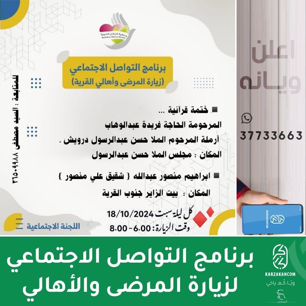 برنامج التواصل الاجتماعي لهذا الأسبوع لزيارة المرضى وأهالي القرية. @karzakancharity المصدر: إنستغرام