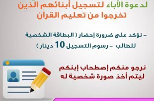 لجنة التعليم الديني تدعو طلبتها *الجدد* وأولياء أمورهم *ليوم التسجيل* *ليلة الثلاثاء* الموافق 26-8-2018 الوقت:7:30 م⏰ مسجد الإمام علي (ع)🕌 . *#ملاحظة:* *سيتم أخذ صورة شخصية لإبنكم*📷 *نرجو إحضار البطاقة الذكية* @taleemdk المصدر