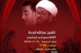 ‘ . ⚠️تذكير . . ۩ ﻣأﭠم ﻛرزﻛٱن .. . . 🚩 برنامج مأتم كرزكان للرجال 🚩 بذكرى تسقيط السيدة الزهراء (ع) 1440 هـ | 2018 م . ▪ليلة الجمعة الموافق 8/11/2018 . . 🔻المجلس الحسيني 7:30 م (الشيخ عبدالله الردحة) . 🔻الموكب العزائي (الرادود حسين أحمد ) . . …