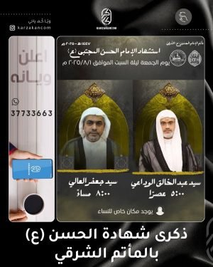🏴 إعادة المناسبات 🏴 ▪️استشهاد الإمام الحسن المجتبى عليه السلام 📅 ليلة الأحد 2 / 8 / 2025 ⏰ بعد صلاة العشاءين مباشرة 🎙 سماحة الشيخ علي الشغل 🔸يوجد مكان مخصص للنساء 🔸 للمجلس والضيافة والاستفسار على الأرقام التالية 📱أبو أحمد 33820643 📱أبو سجاد 36422206 📱أبو يقين 33359965 @alaskariyeen المصدر: …