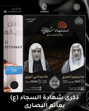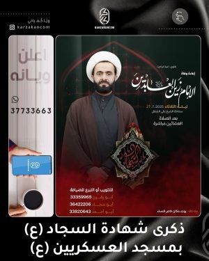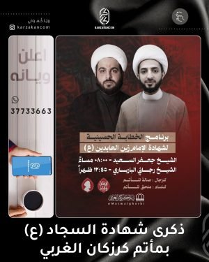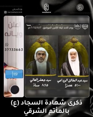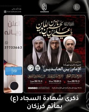 ❞ ذكـرىٰ اسـتشـھـاد ،، ❞ الإمام السجاد ’ع‘ ،، ▓ ليلة الإثنين 20-7-2025 ▓ موكب أبناء الطف (للأشبال) █ الرادود الحسيني علي حسين ≣ الإنطلاق من أمام مأتم كرزكان للرجال ⌯ 08:15 مساءً ▓ الخطابة الحسينية █ الشيخ بشار العالي ≣ مأتم كرزكان للرجال ⌯ 09:15 مساءً ▓ موكب العزاء …