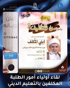 °التكليف الشرعي(9)° لقاء أولياء الأمور بعنوان “ابني المكلف” 🗓 ليلة الخميس 1672025 🕗 الساعة الثامنة مساءا 📍مسجد الإمام علي (عليه السلام) ۩ التعليم الديني- كرزكان @taleemdk المصدر: إنستغرام
