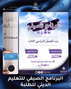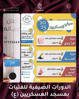 أكمل القراءة »إعلان لجنة التعليم الديني للفتاة بمسجد العسكريين {عليهما السلام} عن الدورات الصيفية