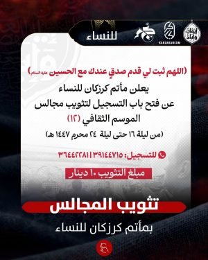 أكمل القراءة »إعلان مأتم كرزكان للنساء لتثويب مجالس الموسم الثقافي (12)
