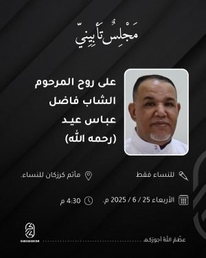 *للنساء فقط* ◼️على روح المرحوم الشاب فاضل عباس عيد. * للنساء: مأتم كرزكان للنساء. الفاتحة المصدر: إنستغرام