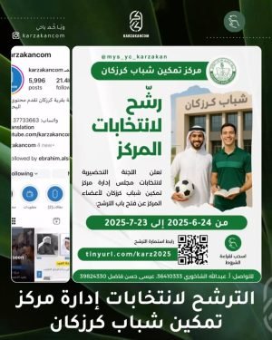 أكمل القراءة »إعلان اللجنة الانتخابية بمركز تمكين شباب كرزكان لأعضاء المركز بالترشح للانتخابات المقبلة.