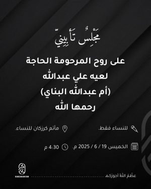 *للنساء فقط* ◼️على روح المرحومة الحاجة لعيه علي عبدالله (أم عبدالله البناي) * للنساء: مأتم كرزكان للنساء. الفاتحة المصدر: إنستغرام