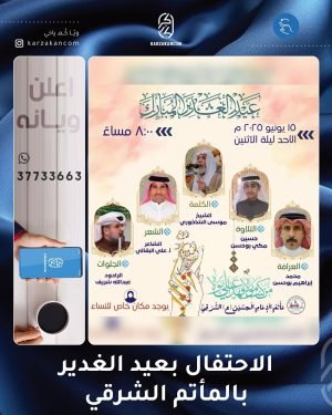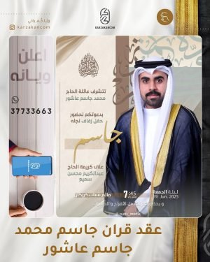 أكمل القراءة »🌺تتشرف عائلة الحاج محمد جاسم عاشور بدعوتكم لحفل عقد قران نجله *«جاسم»*، بمأتم شباب كرزكان.